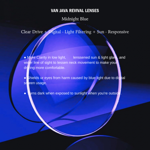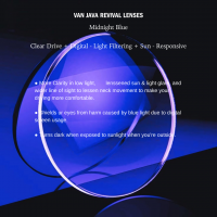 This type of lens blocks radiation and changes color automatically to dark and has the advantage of blocking vehicle headlights at night with an elegant blue coating.